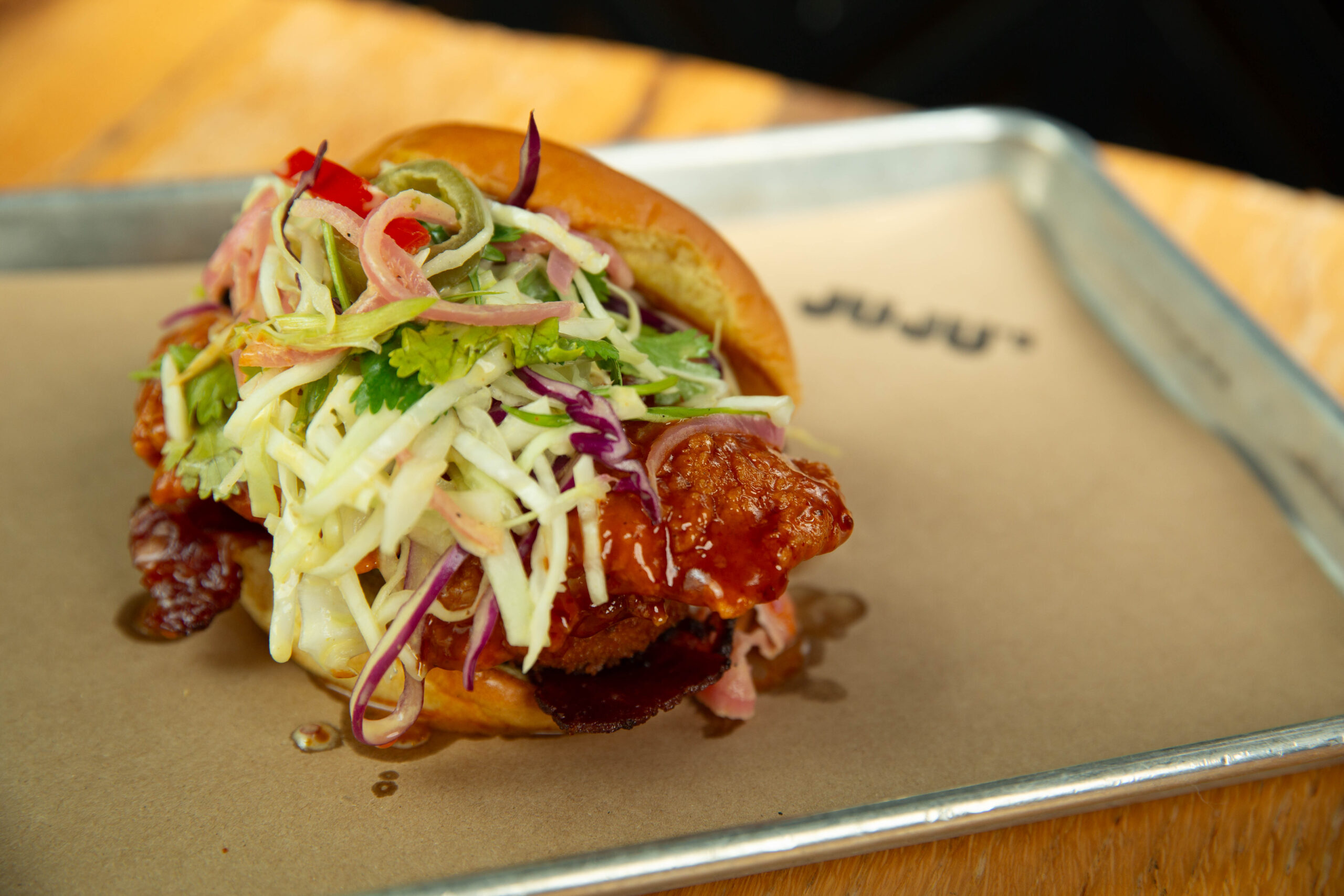 Savor succulent Jumbo Tenders, juicy sandwiches like the Seoul Sister with Korean gochujang sauce, or the classic JuJu’s with crisp pickles and slaw.